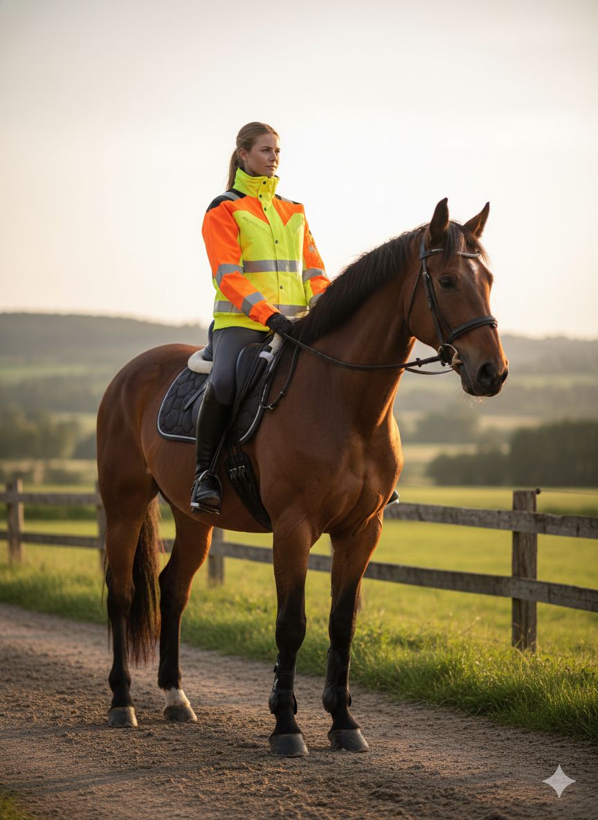 Egal ob beim Reiten, Führen eines Hundes oder auf dem Fahrrad: mit dieser modischen Jacke ist man deutlich sichtbarer!